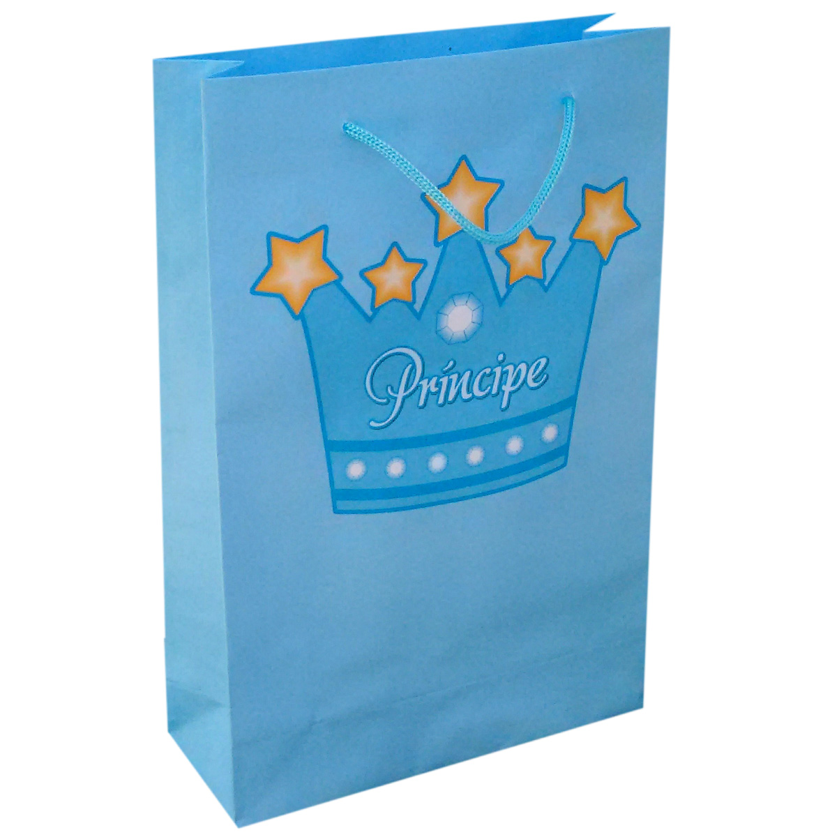 Transforme cada lembrancinha em um presente digno da realeza com a Sacola de Papel Príncipe. O tom azul-claro é enfeitado por uma coroa com estrelas douradas, pérolas ilustradas e o título “Príncipe” em lettering elegante—uma combinação que conquista desde chás de bebê até festas de primeiro aninho ou eventos corporativos que buscam um toque nobre.
